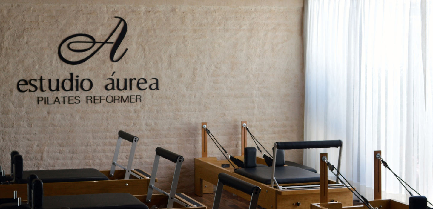 Estudio Áurea es un espacio de pilates diseñado a través de un concepto preexistente, respetando la estructura original.